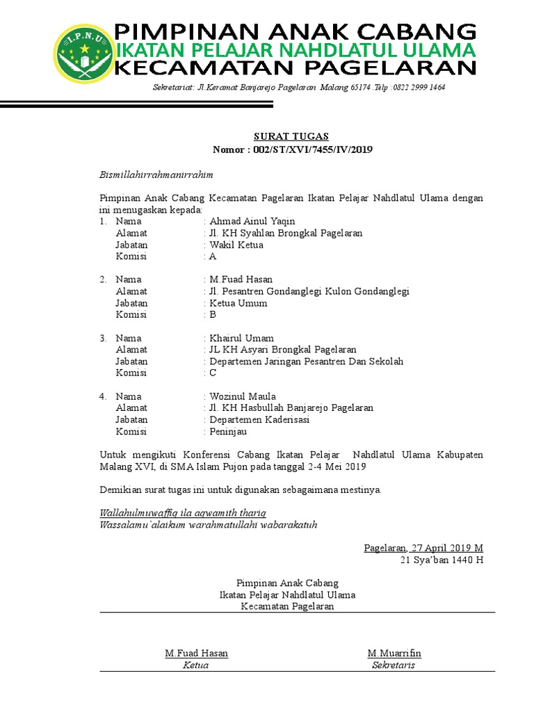Surat Tugas Ipnu - Pacipnuippnu Nusawungu Instagram Profile With Posts And Stories Picuki Com : Pengertian surat tugas adalah surat resmi yang dibuat dan dikeluarkan oleh seorang pejabat yang setelah pekerjaan tersebut berakhir atau terselesaikan maka surat tugas tidak dapat berlaku lagi.